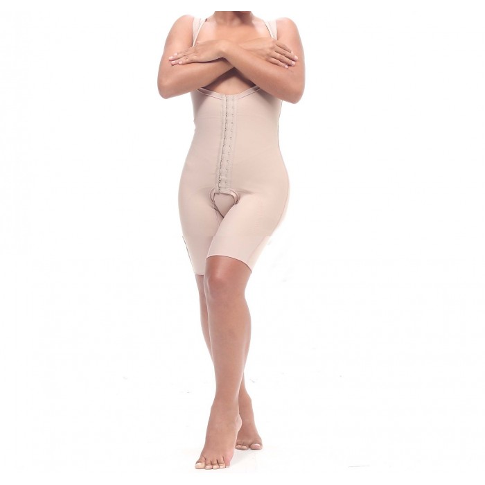Modelador Inteiriço acima do Joelho Cava no Seio Alça Larga. Essa Cinta Pós Cirúrgica foi projetada para ajudar ao máximo pessoas que estão em algum Pós Cirúrgico. Abertura frontal com fechamento em colchetes de dupla regulagem. Composição: 90,4% Poliamida e 9,6% Elastano. Modela todo o corpo, auxilia na redução de edemas e prevenção de gorduras localizadas, flacidez e celulite.